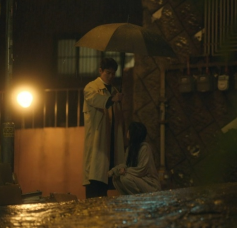 비를 맞으며 울고 있는 수영에게